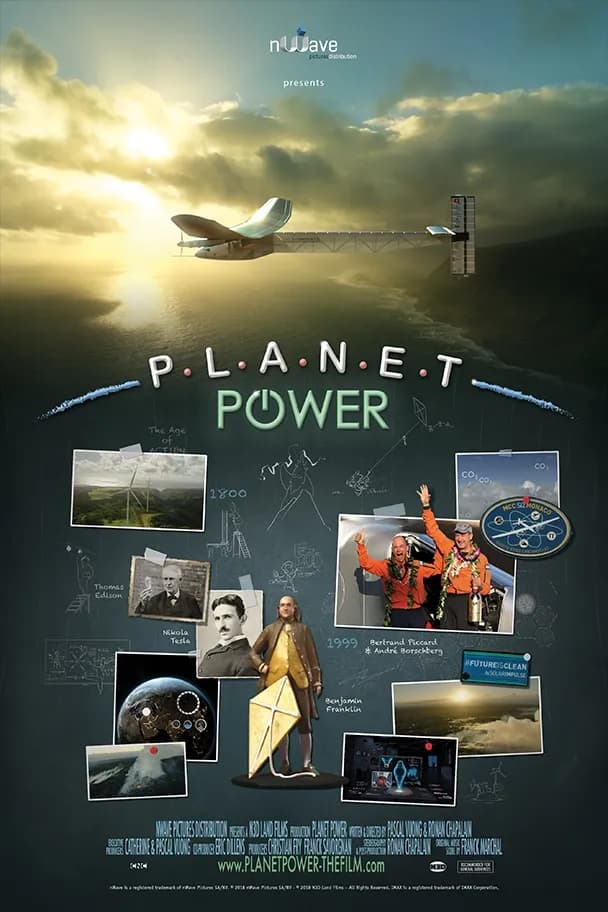 Planet Power explores the history of electricity – from the first spark created by man’s hand to today’s industrial power plants. We meet scientists who changed the world, like Faraday, Franklin, and Tesla and we glimpse the future, as Solar Impulse becomes the first plane to complete a round-the-world flight powered only by the sun. With a mix of chalk animation, CGI, archival footage and spectacular aerials, the film also explores the challenges ahead: how to meet the growing energy needs of our industrialized world, while also protecting the health of our planet.